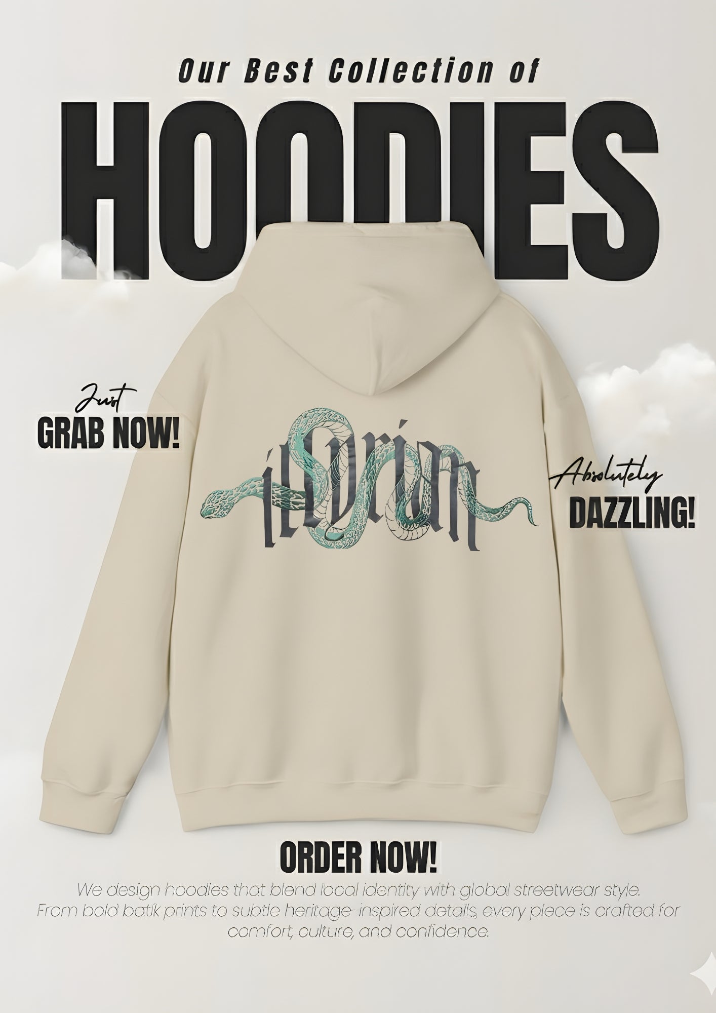Gender : Men Category : Hoodie Outfit Type : Ready to wear Sub-Category : Printed Hoodie Color Type : Black & Beige Number of Pieces : 1 Piece - Top Product Type : Daily/Basic Wear/Casual Wear / Formal Wear Season : Winter Fabrics: Fleece...